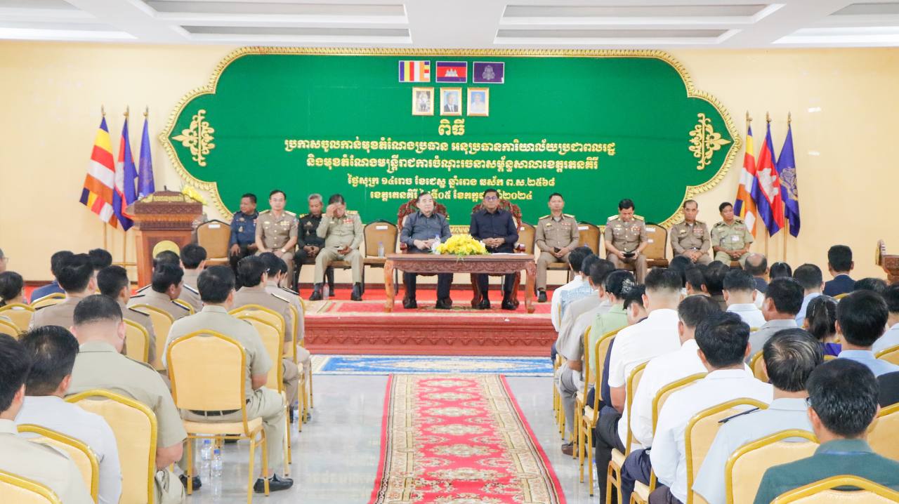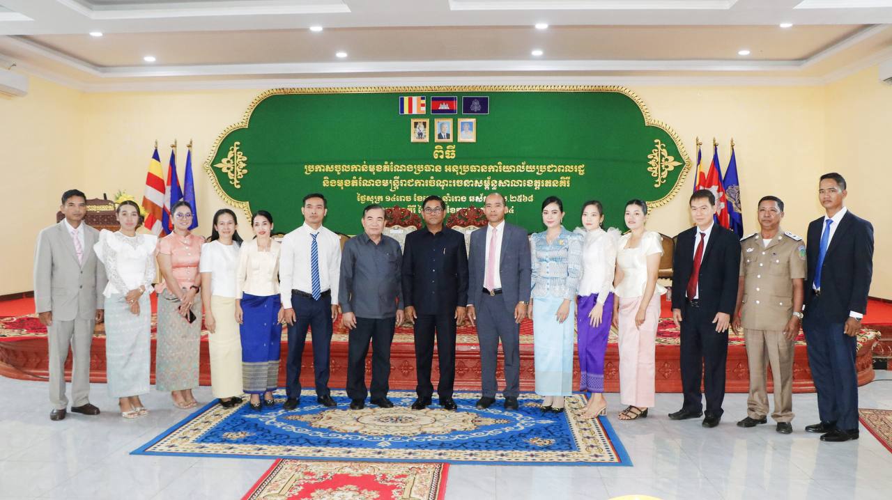 ខេត្តរតនគិរី៖ ពិធីប្រកាសចូលកាន់មុខតំណែងមន្ត្រីរាជការសាលាខេត្តរតនីគិរីខាងលើត្រូវបានប្រារព្ធធ្វើឡើងសាលប្រជុំអគារDរសៀលថ្ងៃទី៥ ខែកក្កដា ឆ្នាំ២០២៤ ក្រោមអធិបតីភាព ឯកឧត្តម ណាប់ ប៊ុនហេង ប្រធានក្រុមប្រឹក្សាខេត្ត និងឯកឧត្តម ញ៉ែម សំអឿន អភិបាលខេត្តរតនគិរី។