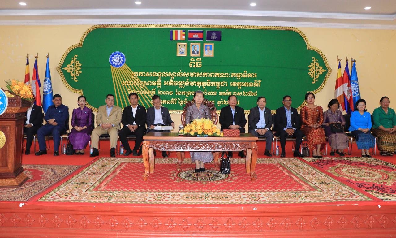 កម្មាធិការរណសិរ្សសាមគ្គី អភិវឌ្ឍន៍មាតុភូមិកម្ពុជា ខេត្តរតនគិរី។ ពិធីប្រកាសនេះប្រារព្ធធ្វើឡើងនៅសាលប្រជុំអគារ D សាលាខេត្តរតនគិរី។