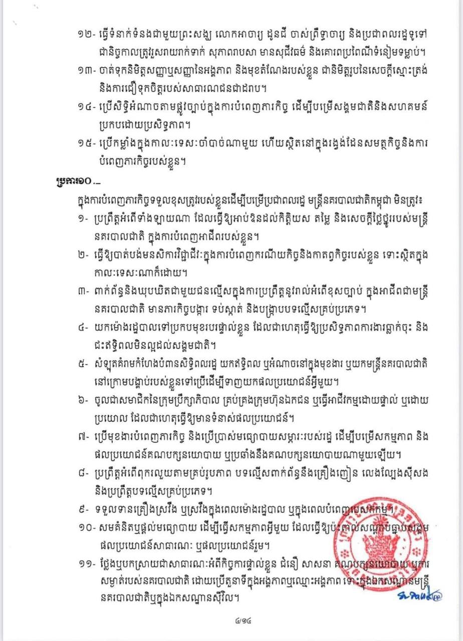 វិន័យកងកម្លាំងនគរបាលជាតិកម្ពុជា លេខ៨៧៣ប្រក ចុះថ្ងៃទី5/3/2024