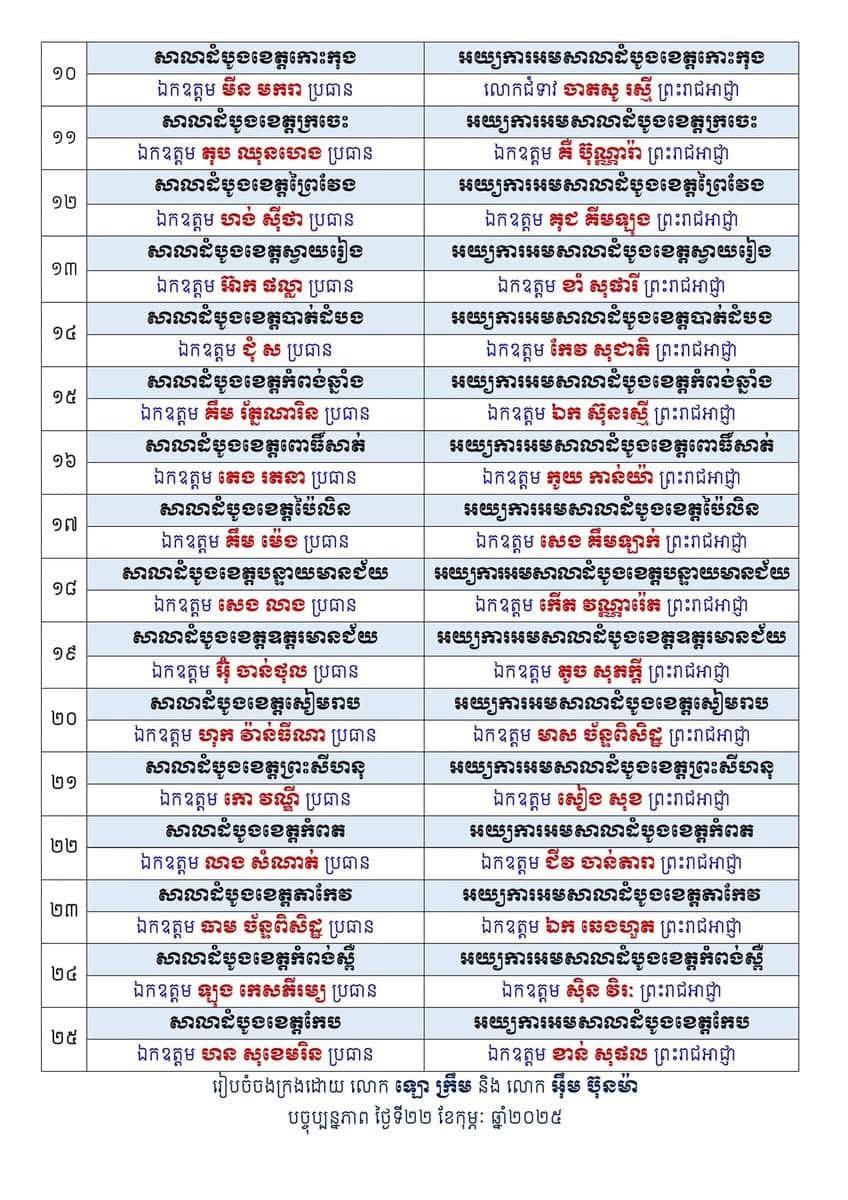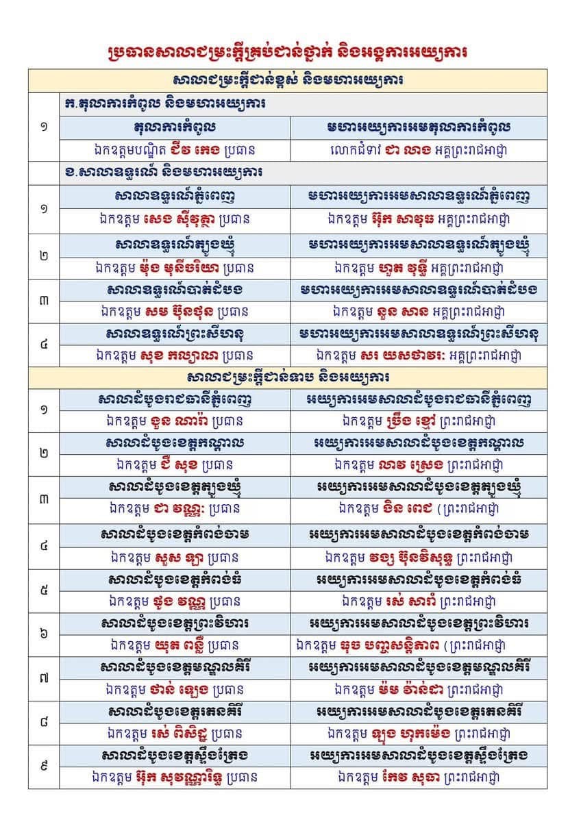 មកស្គាល់មេៗតុលាការតាមសាលាដំបូង ឧទ្ធរណ៍ កំពូល ថ្មីទើបសម្រេចថ្ងៃទី២២ ខែកុម្ភៈ ឆ្នាំ២០២៥នេះ ៕