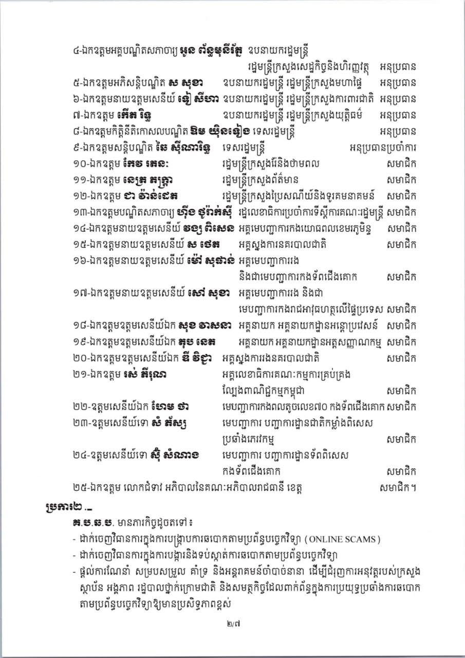 គណៈកម្មការចំពោះកិច្ចប្រយុទ្ធប្រឆាំងការឆបោកតាមប្រព័ន្ធបច្ចេកវិទ្យា (ONLINE SCAMS) មានសម្តេចមហាបវរធិបតី ហ៊ុន ម៉ាណែត ជាប្រធាន៕