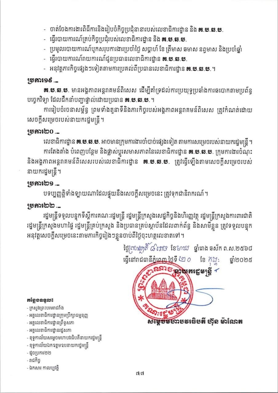 ខាងក្រោមនេះជា សេចក្តីសម្រេចរបស់ប្រមុខរាជរដ្ឋាភិបាលកម្ពុជា៖