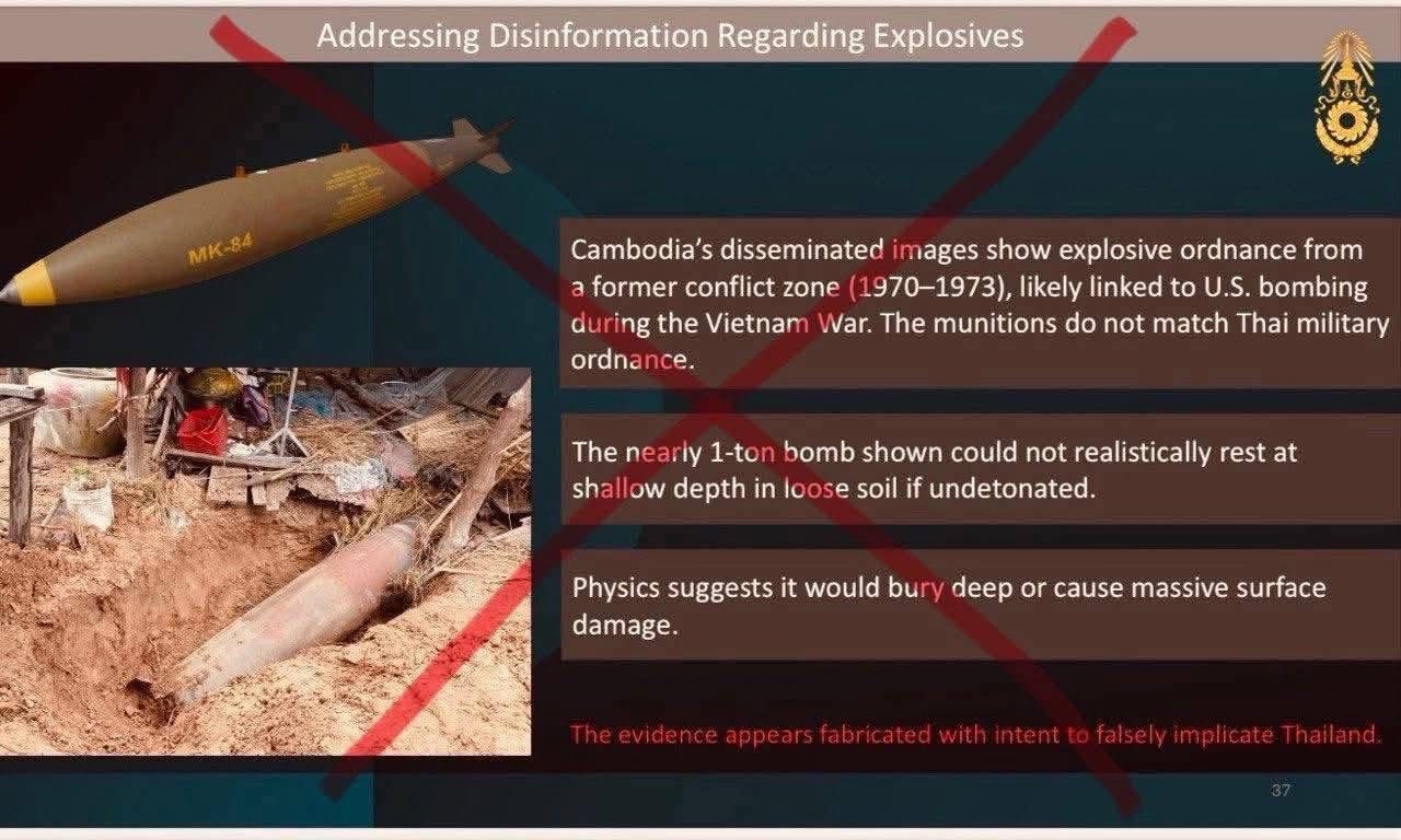 Today 2nd August 2025, at Tamon Senchey pagoda in Taham Village, Kokmorn Commune, Banteay Ampil District, Oddor Meanchey province, when CMAC expert teams responded to an emergency call for provide safety access to the temple area, CMAC’s Bomb experts can confirm that this pagoda was bombed by the Thai Air Force used F-16 and MK-82 with the GBU-12 Payway II bombs. Through the pieces of evidences of two MK-82 bombs with Serial No. 22002788 and Serial No. 22002794 date of manufacture January 2023!.