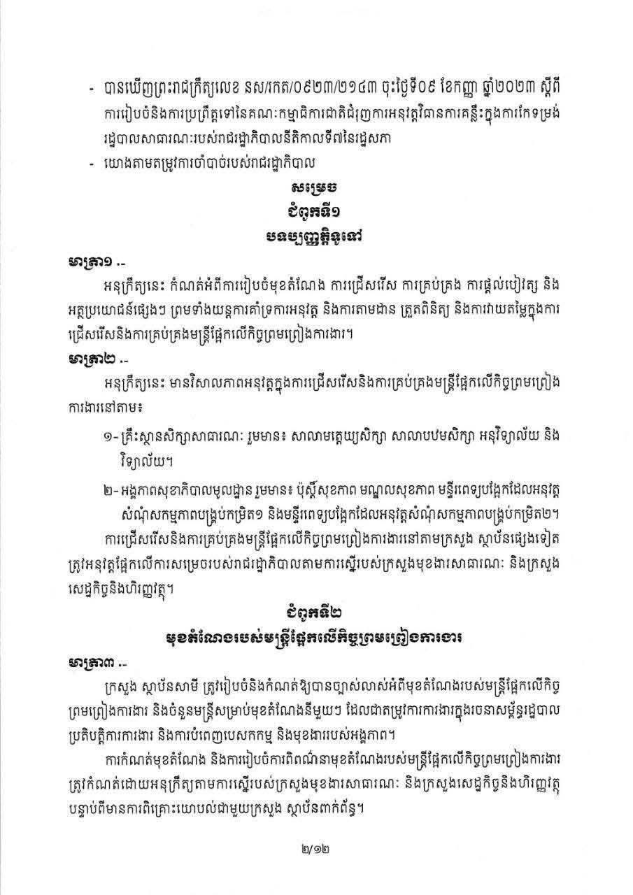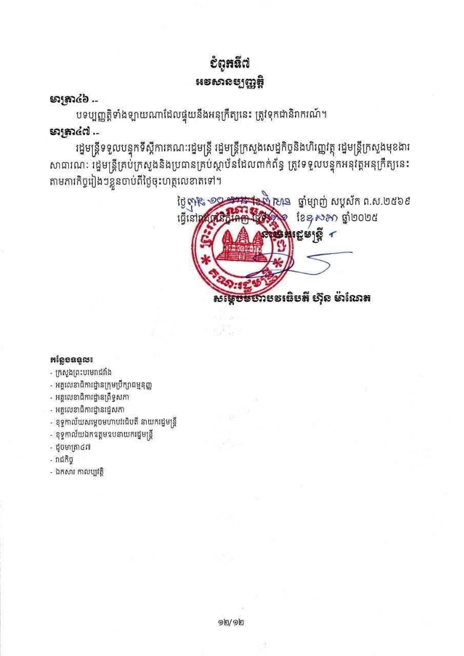 អនុក្រឹត្យលេខ ៧៨.អនក្រ.បក ស្តីពីការជ្រើសរើសនិងការគ្រប់គ្រងមន្ត្រីផ្អែកលើកិច្ចព្រមព្រៀងការងារ ចុះថ្ងៃទី២១ខែឧសភាឆ្នាំ២០២៥