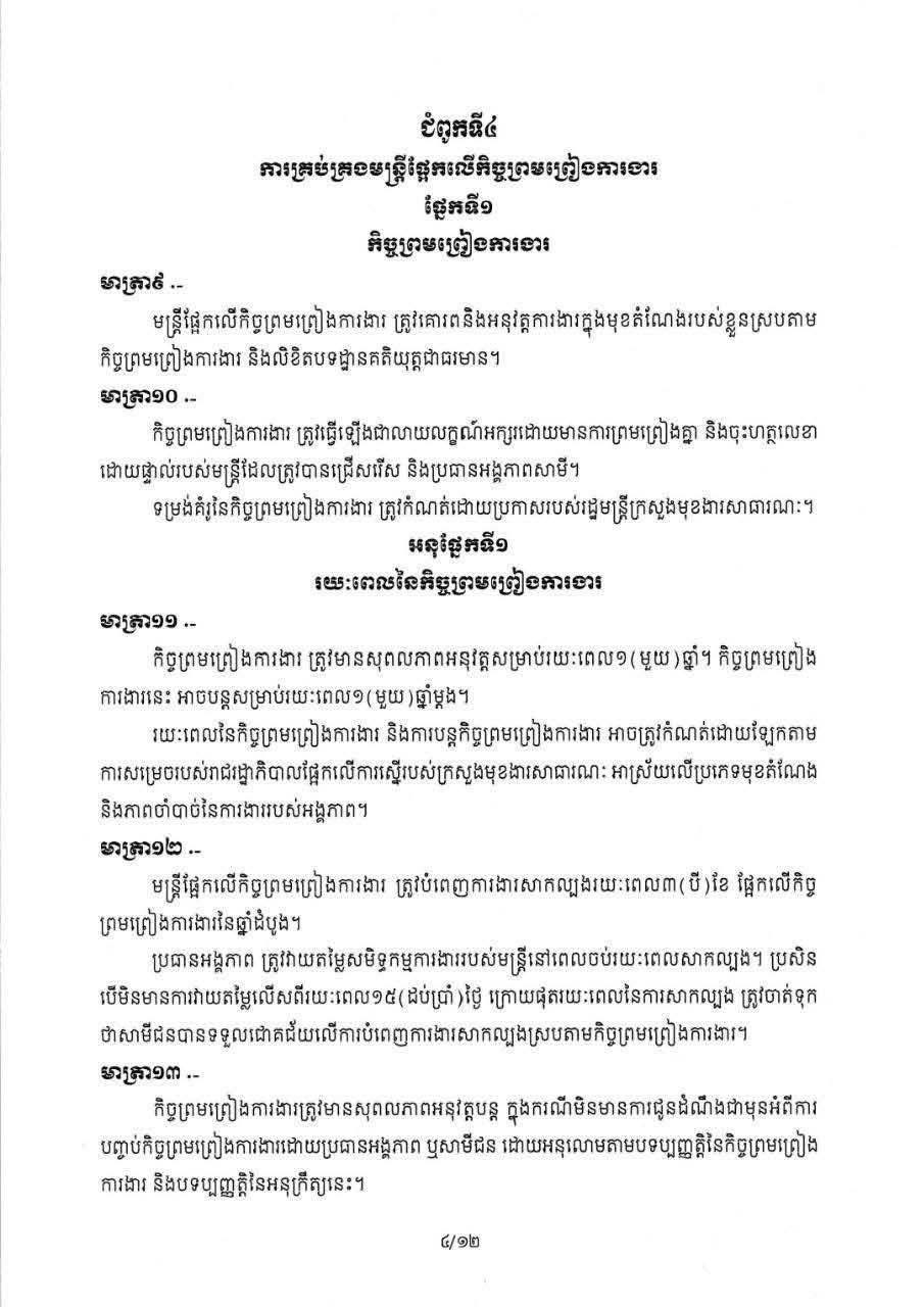 អនុក្រឹត្យលេខ៧៨ ការគ្រប់គ្រងមន្ត្រីផ្អែកលើកិច្ចព្រមព្រៀងការងារ